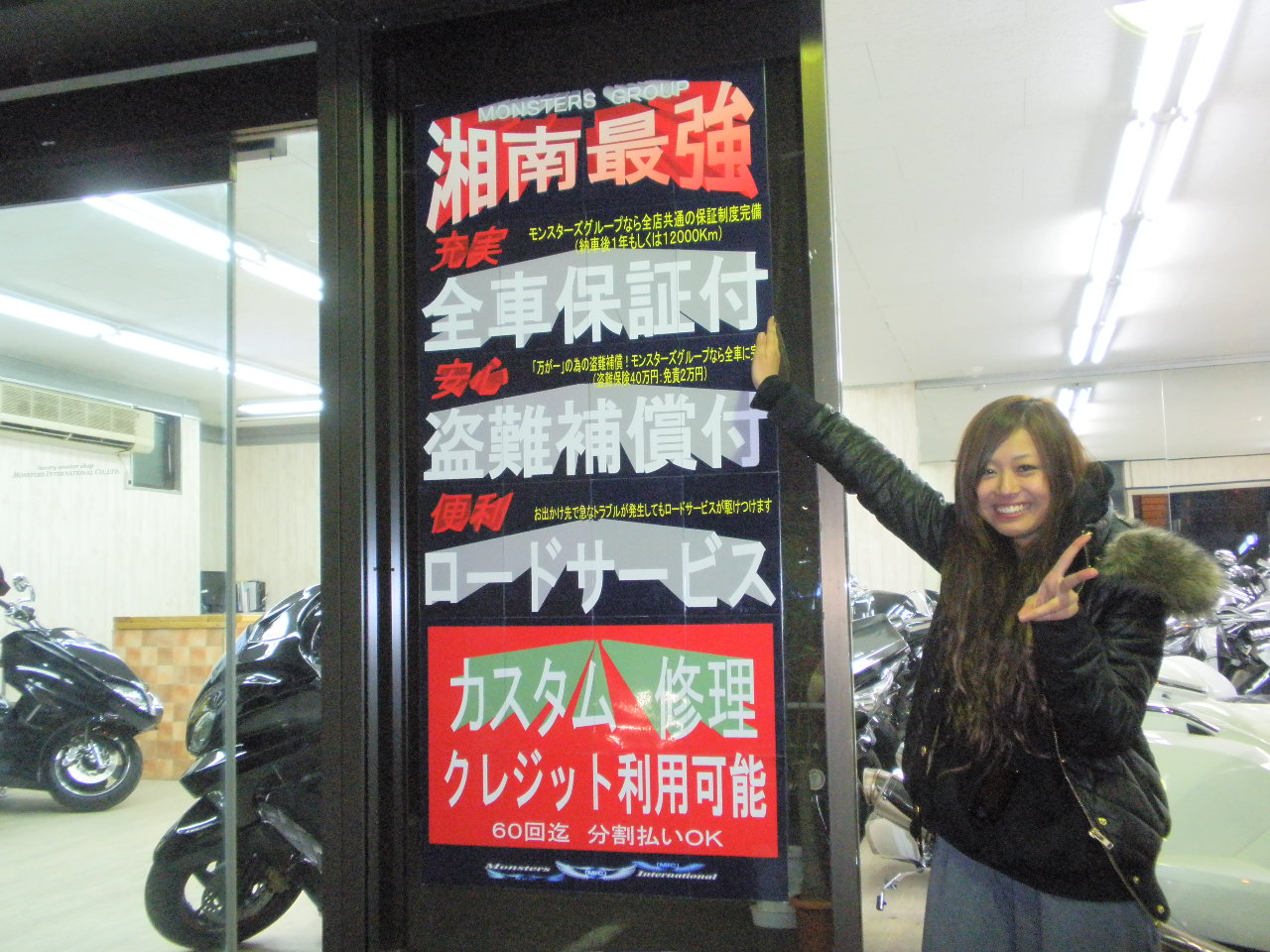 MONSTERS INTERNATIONAL CO.,LTD. www.monstersinc.jp お気軽にコメント残して下さいませませ♪ ビックスクーター専門店! 現在、関東に3店舗展開中です! 横浜・府中・湘南! 次こそ貴方の街に行かせて下さい♪